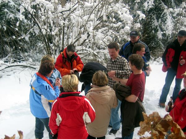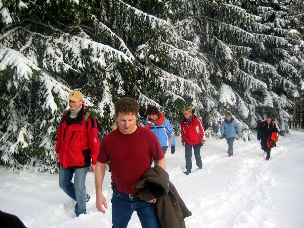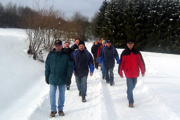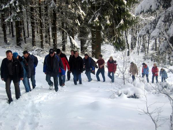 Bei idealem Wetter und Schneeverhältnissen traf man sich um 14.00 Uhr zum Abmarsch in Richtung Saßmicke. Von Saßmicke ging es steil dem Berg hoch bis auf die “Hohe-Markt”.